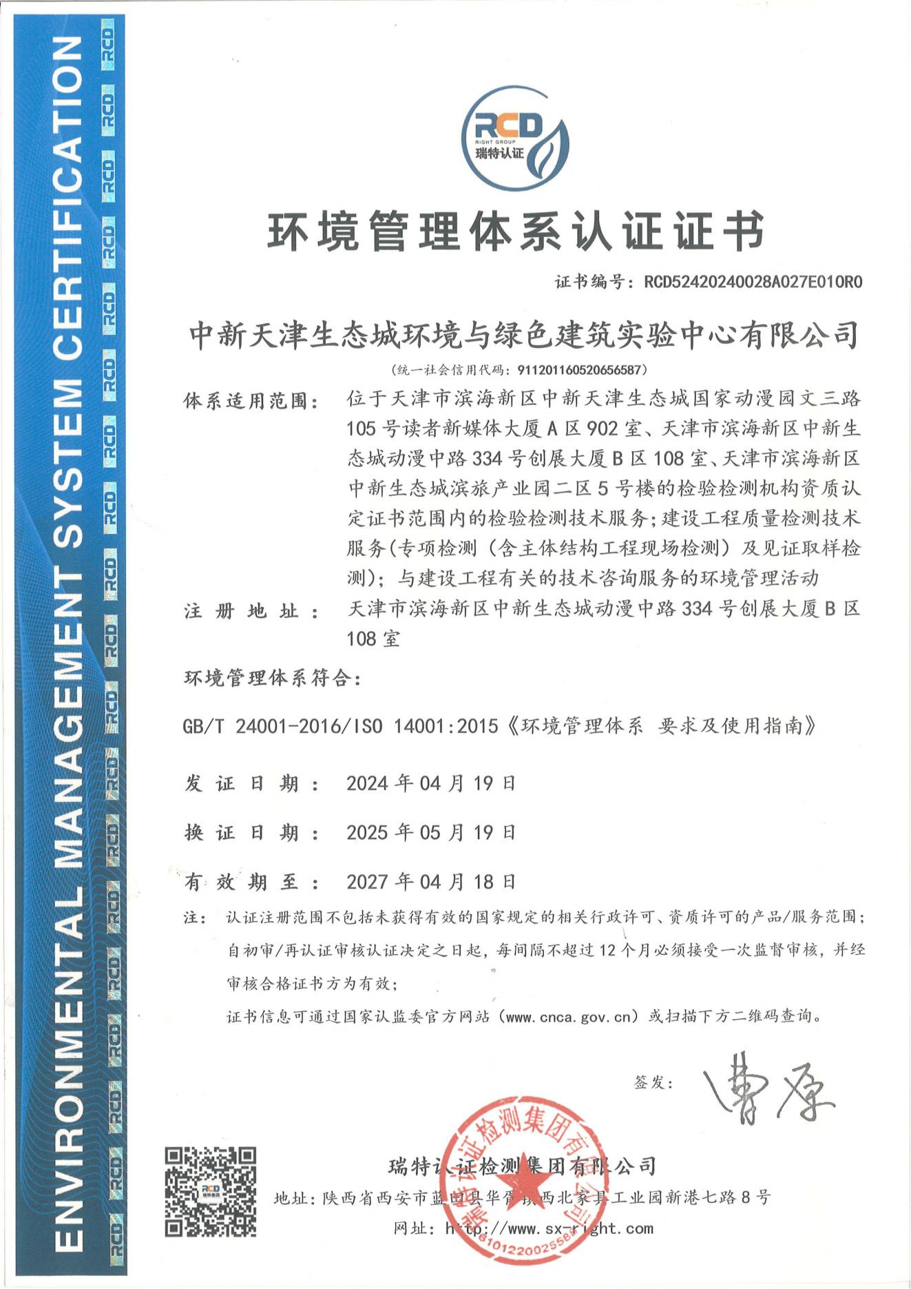 中新天津生態(tài)城環(huán)境與綠色建筑實(shí)驗(yàn)中心有限公司